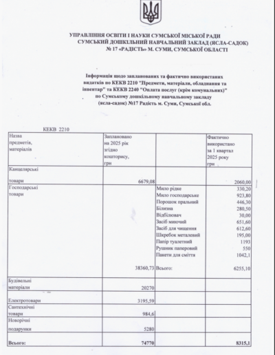 Фактично використані видаткі за 1 кв. 2025 р. від admin | Кві 3, 2025 | Фінансова звітність Переглянути/завантажити .PDF – Фактично використані видаткі за 1 кв. 2025 р.